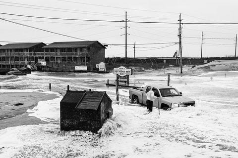 I first saw this picture about a year and a half ago, and it’s stuck with me ever since. At first, I didn’t know much about it, other than it had been taken on the Outer Banks. Because it’s high on vibes but low on context, it’s a great vessel for your feelings about, well, any number of things. One person might look at this and see the folly of humanity’s insistence that it can bring nature under control. Another might feel bad for the homeowner who has to clean up and start over. Still others might just think it’s a cool picture.