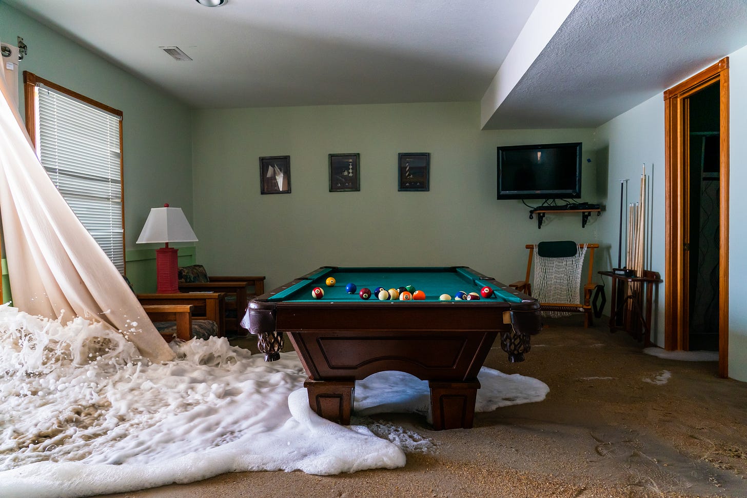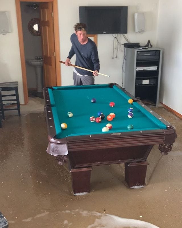 Hurricane Teddy is a storm that most people forget about. It never came close to shore, but it kicked up the ocean in September 2020, and sent water across Highway 12, closing it for five straight days. It also pushed the ocean up into homes on Hatteras Island. Daniel was checking his Instagram feed, when he saw a video of a friend doing something… unique. It opens with water rushing in through an open doorway. Then it pans over to show a man playing pool with the water flowing around his ankles. “Solids,” he says before lining up a shot.