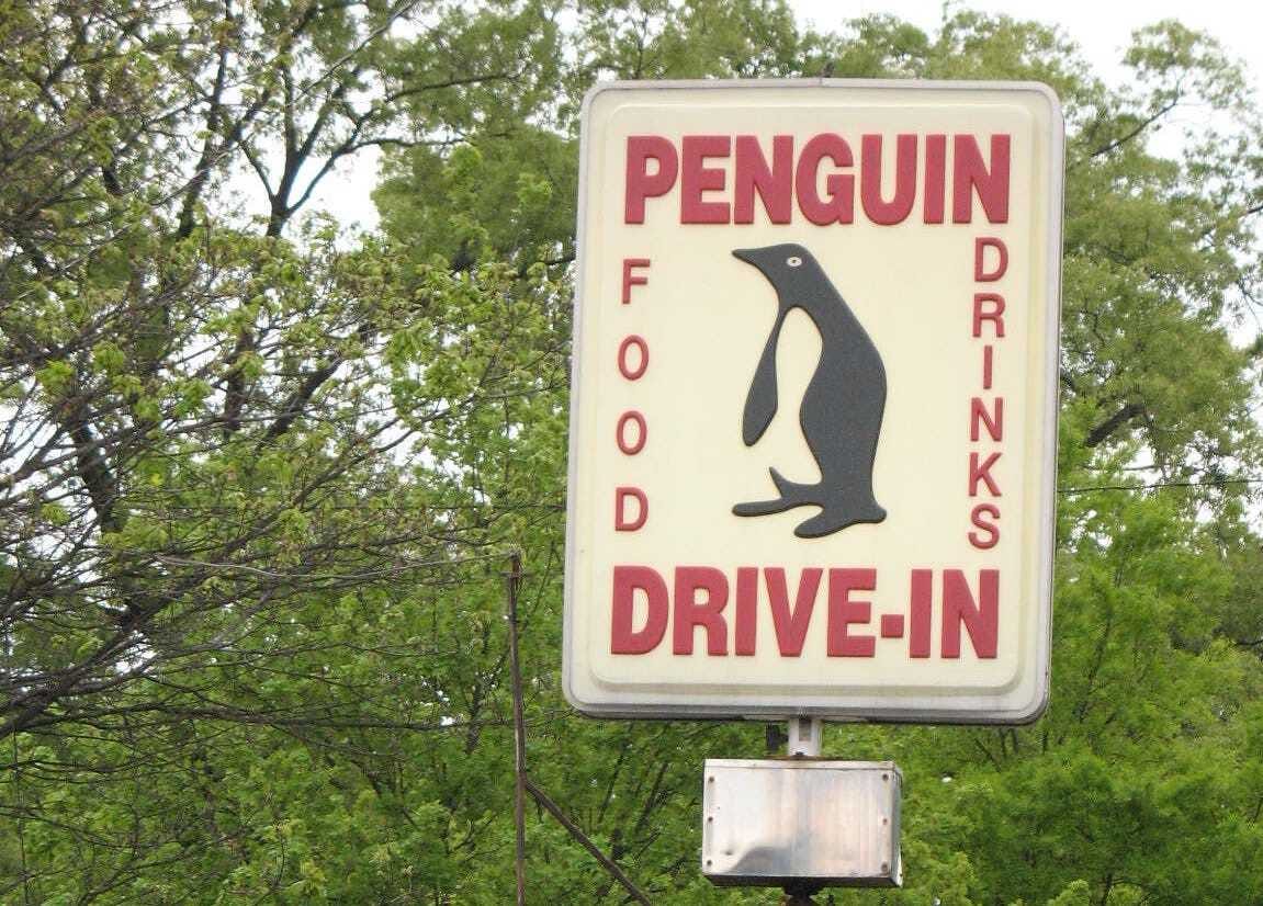 After decades at the corner of Thomas and Commonwealth Avenues in Charlotte, the Penguin Drive-In sign will be coming down. Two sources tell me that the sign will be removed soon, but won’t disappear completely: The plan is for one of its plastic panels to hang at Midwood Park, and for the other to go on display at the Charlotte History Museum. There’s an event planned for this Friday, and a more formal announcement will come out this morning.