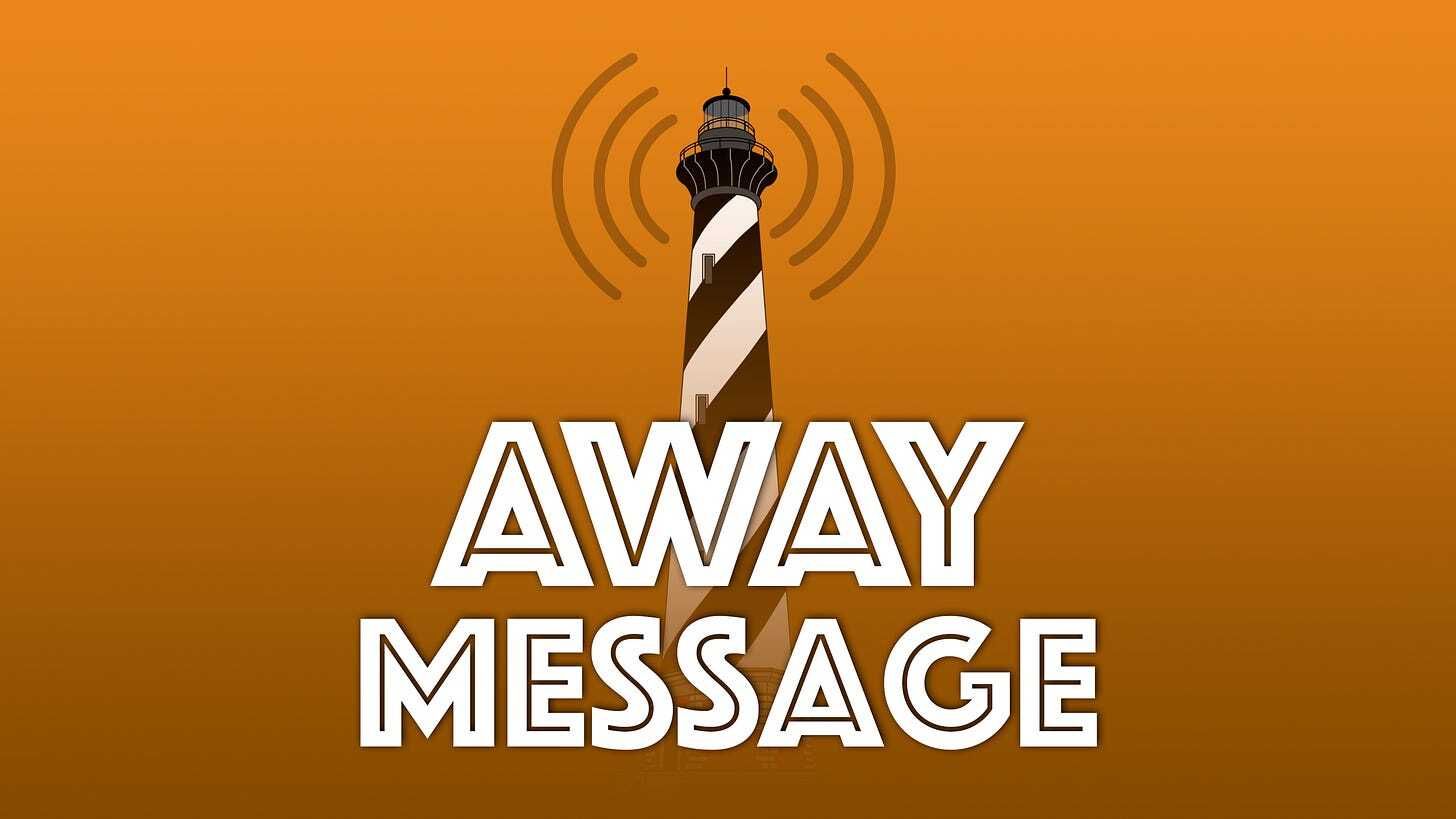 In the meantime, you can subscribe by searching for “Away Message” wherever you get your podcasts, or by tapping on one of the buttons below.