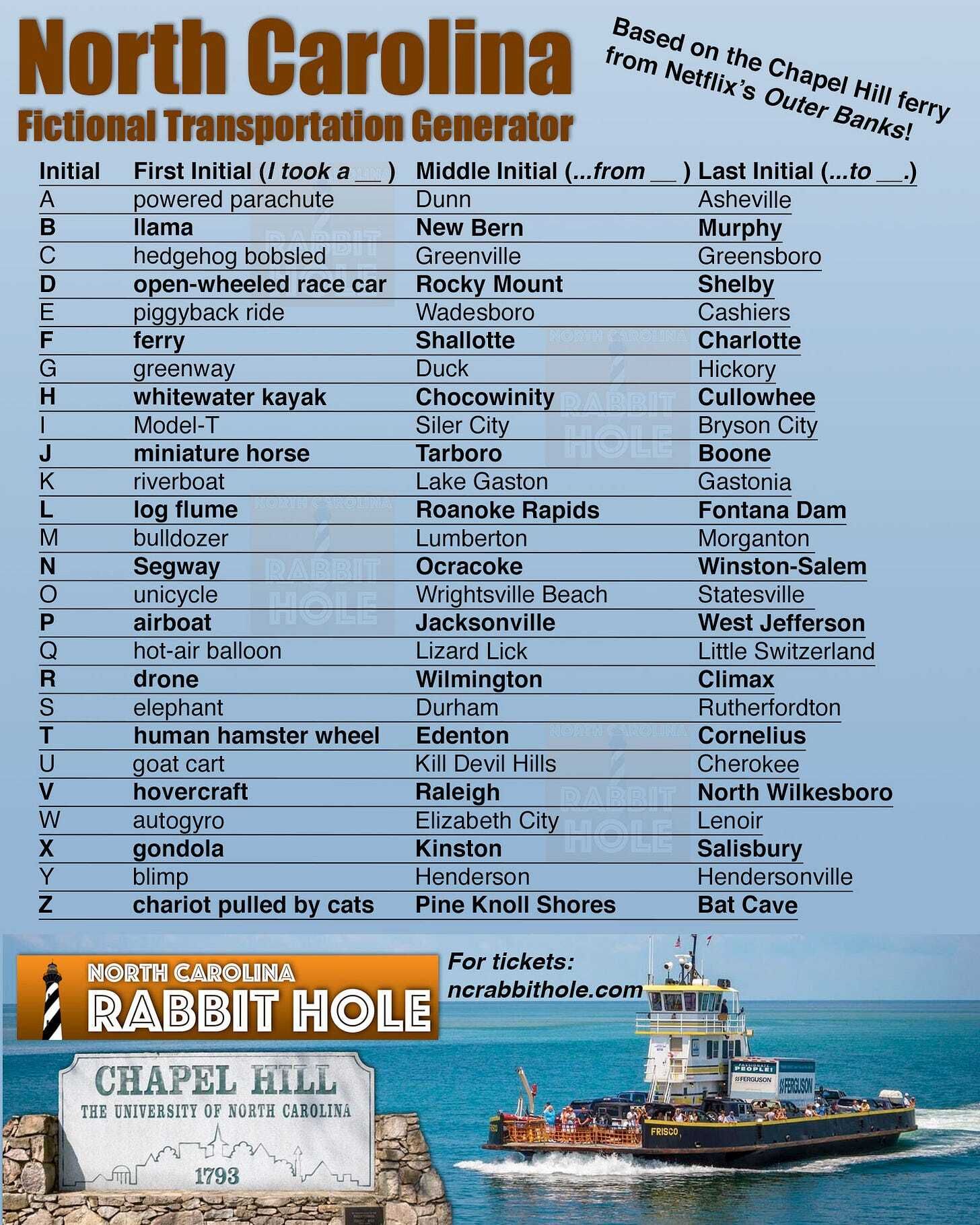 So, folks, it is time for a Festivus-style Airing of Grievances. What shows or movies about North Carolina irk you because they got a small but easily-Googlable detail wrong? Or, what fictional North Carolina transportation option would be less accurate than the one depicted in Outer Banks? What, dear reader, is your personal ferry to Chapel Hill? As always, reply to this email, leave a comment, or tweet at me.