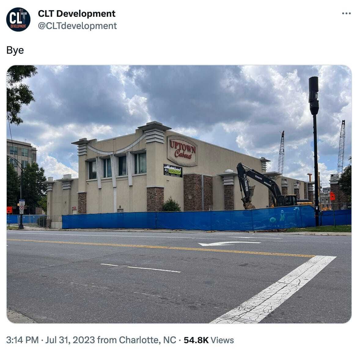 “Would the stadium be the catalyst taxpayers were promised?” Charlotte Observer columnist Tom Sorensen wrote in 1997. “Yes. Quickly, the first business came. It came with a pink awning. Who knew it would be a strip joint? Give it up for the Uptown Cabaret.”