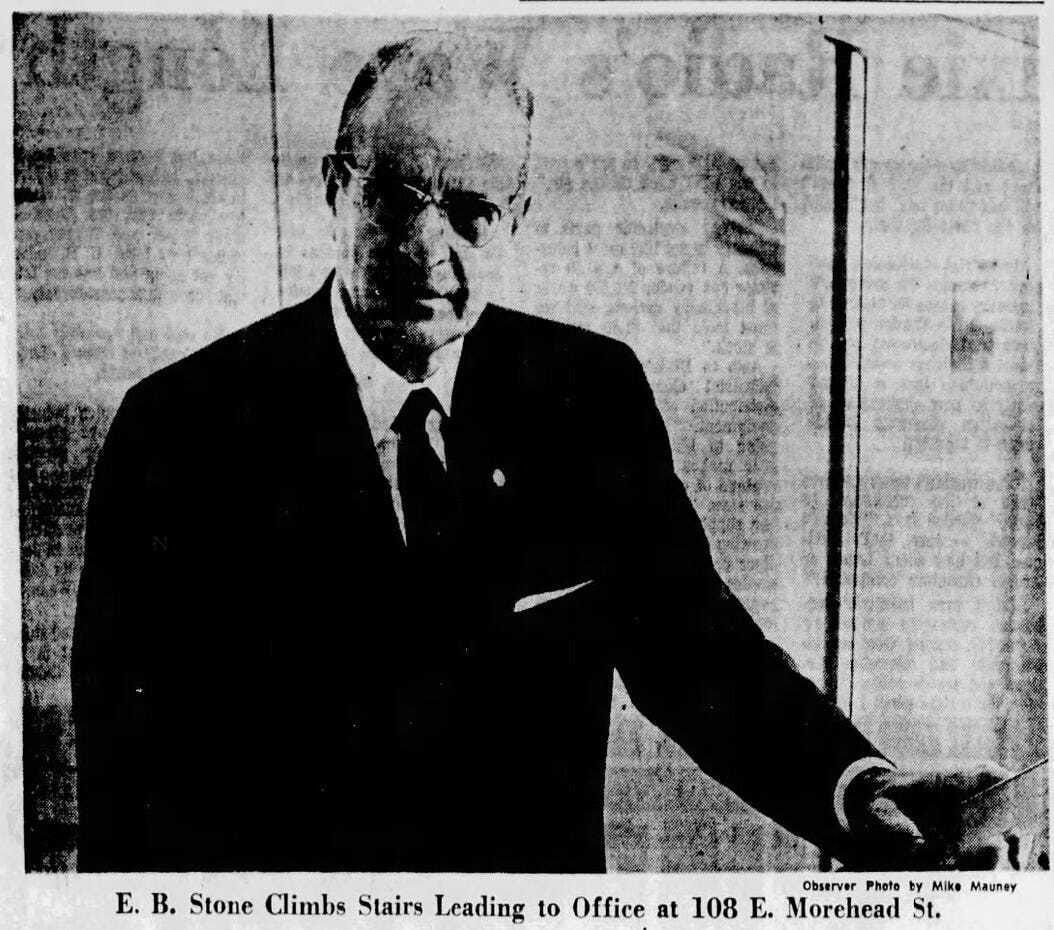 At one point, 100 people worked at the headquarters on East Morehead Street. By the early 1960s, E.B. Stone Finance had $23 million a year in revenues, mostly from making auto loans during the postwar boom. Stone himself served on Charlotte’s Zoning board.