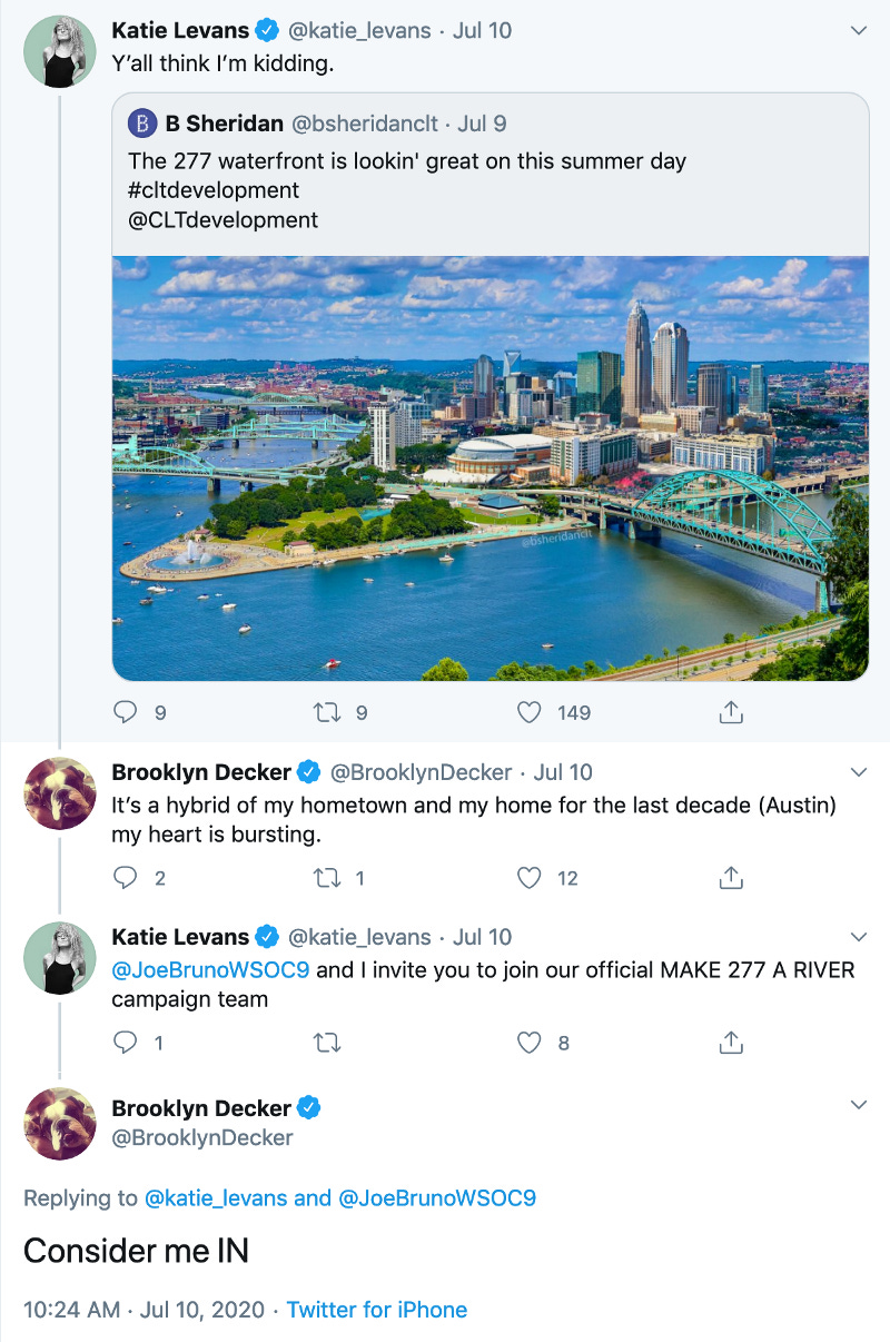 It took only 16 days for the I-277 River movement to land an honest-to-God celebrity endorsement: