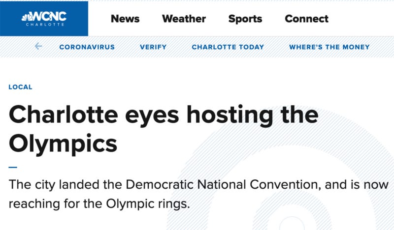I mean, I still lived in town in 2011 when folks in town, with a visible DNC 2012 contact high, were talking about the Olympics. The Olympics! Discus and handball and all of that. Honest to God, people with six-figure salaries were talking about it. Not some dude with 15 followers firing off a drunken tweet. No. The head of the Charlotte Chamber was interviewed on television about it. His message: Crazy, right? You think I’m joking? WELL MAYBE I’M NOT JOKING.