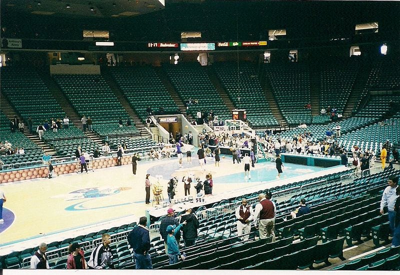 But here’s the thing about this stupid idea that I’m wasting time on: It’s a very pure Charlotte joke. An I-277 River is a formulaic punchline that, in some way, the city has been building to since the Hornets came to town. Back when they arrived in 1987, Charlotte had half the population and best known for wrasslin’ and NASCAR. Nobody really thought the NBA would come here. Then it did, and still-in-shock Charlotteans, who had nothing else to do over the winter, filled the Coliseum to capacity night after night. The teal and purple Starter jacket became a national phenomenon. I wasn’t living in Charlotte then, but that had to have been a bewildering experience. Then came the Panthers in the mid-90s, and things kept snowballing. Nothing was too outlandish anymore. The ambition of the place was fueled by two competing banks that paid for all of the nice stuff in town (thank Bank of America for the bus terminal, they built it!). For a good two decades, every domino fell the right way. You could kiss the ground and, a year later, a skyscraper would appear on that exact spot. A light rail was conjured into existence. Someone placed their hand on a book of spells and wished for a major motion picture to be filmed here and BAM! Juwanna Mann.