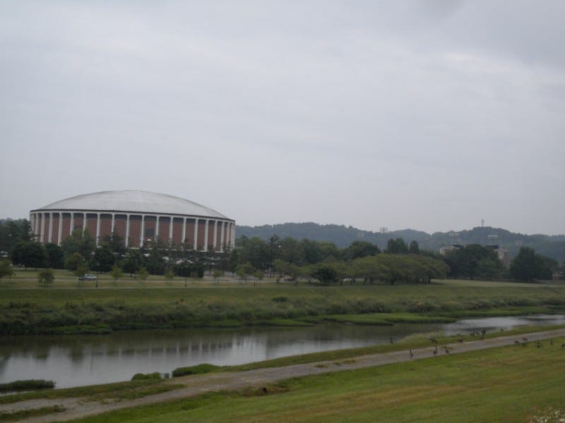Ah, but wait, what about Wilmington? It has a river walk! It has a cool bridge! It’s built right on the river! Sure is! But at that point, the Cape Fear is past the last lock and dam, and it’s increasingly a tidal estuary at that point, less susceptible to flooding and more influenced by, you know, THE RISING SEAS. Point being, most cities do not want to put all of their cool stuff right down by a real river, because real rivers are terrific until it rains. I used to live in a river town. You know what Huntington, West Virginia did with the Ohio River? That’s right, they built the wall— a flood wall, to try and keep the river out. The city eventually created a little park on the other side, but it was sort of smelly because of the stuff that was being carried downstream. It was not a popular destination.
