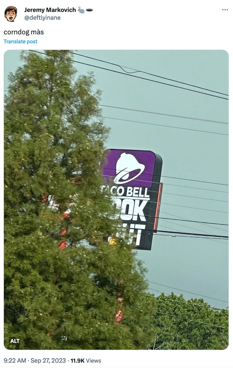 But! You can dream. You can imagine a world in which you can order a chalupa with a side of corn dog. You can close your eyes and picture the Doritos Locos milkshake. You may have been a mirage, highway sign, but thank you for unlocking a world of possibility.