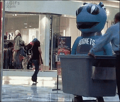 This is the perfect GIF gag. From the setup (Look out! Somebody warn him there’s a human in that blow-up mascot!) to the action (Boo! JESUS CHRIST! Haha! He fell!) to the reaction (Guy quickly recovers, realizes he still has a blunt object in his right hand, uses it as weapon) to the aftermath (Guy coolly walks away as Hugo slowly falls on his face). Above all, this works because we all want to be this guy. It takes near-impossible fortitude to transition from mortifying embarrassment to Boss Mode in less than three seconds.
