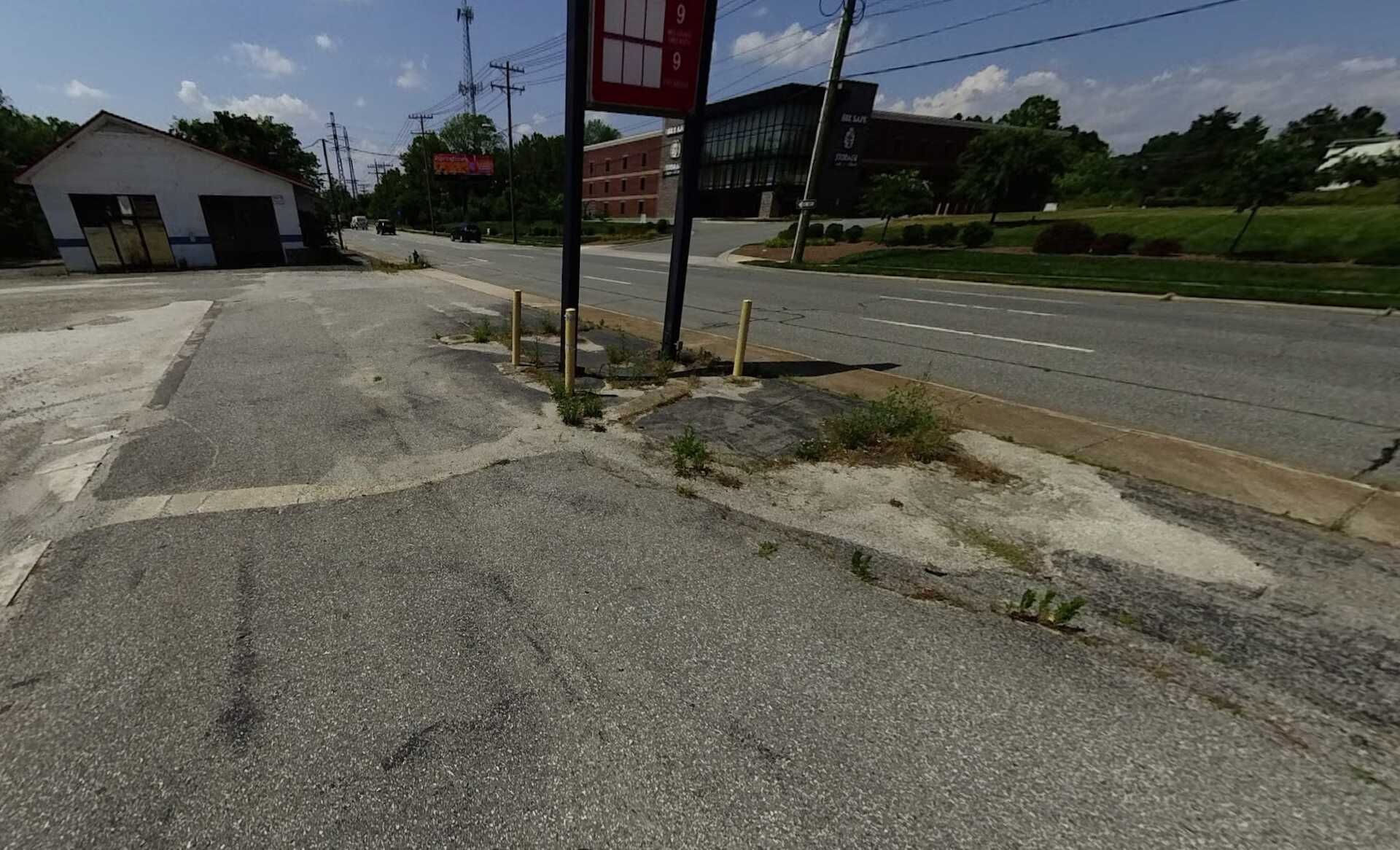 If you must know, this stretch of Battleground is located between downtown Greensboro and the water treatment plant, and this particular image was taken in May 2019. This wasn’t taken by the Google car, either. Someone intentionally pulled off the side of the road into an empty asphalt lot, took a 360-degree panoramic shot of … this, posted it, and then went on his way. The photographer appears to be a guy who had a side gig of taking drone videos and 360-degree images that end up in virtual tours, mostly for real estate purposes.