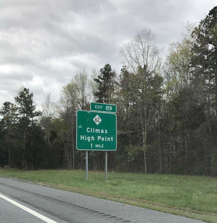 Climax (also not a town!) was named that because it was the high point along a railroad, and it’s also close to the actual City of High Point, which was also named because it was the high point along a railroad. As was Apex! Conversely, Level Cross got its name because its crossroads were level. No banked turns! Weird that this is the name of the place that gave us Richard Petty.