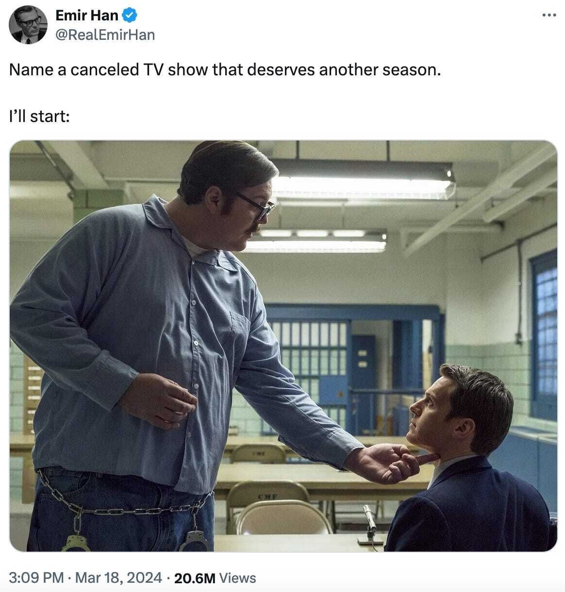 That Tweet has 20 million impressions and 19,000+ replies! The most viewed reply to that tweet seems to be “Firefly,” a show that only ran for 14 episodes AND WENT OFF THE AIR 21 YEARS AGO.
