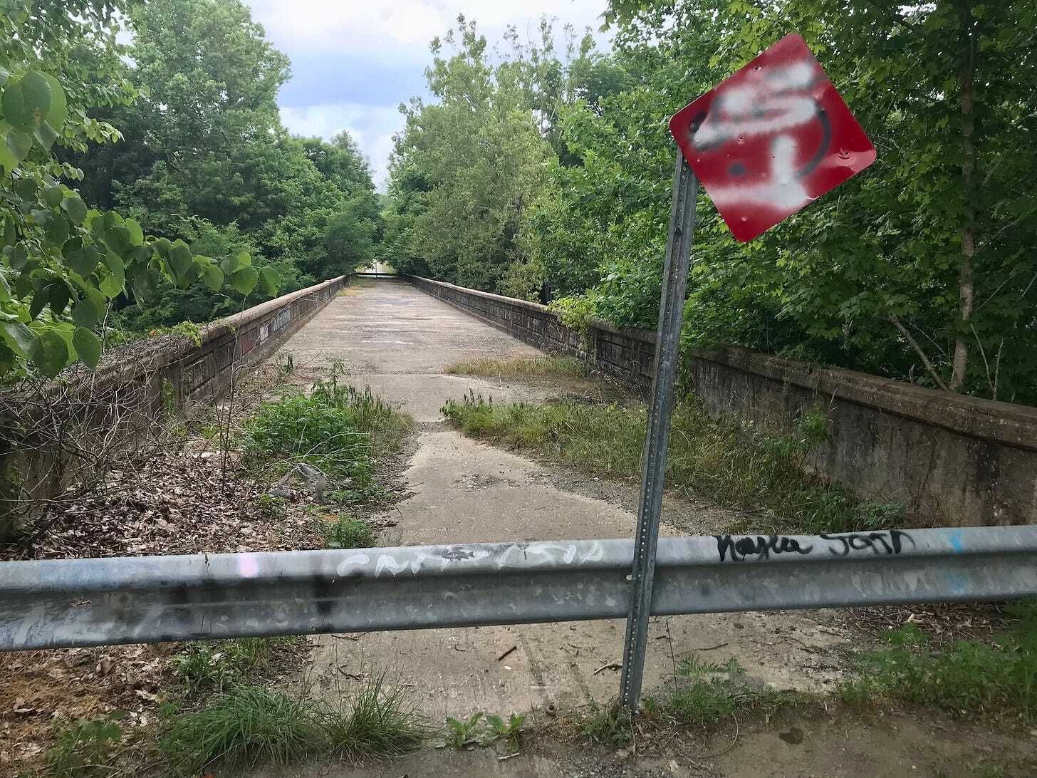 I drove out to see it myself a few years ago, and when I talked to some folks nearby, none of them had heard any of this story. They just saw what I saw: A stately old bridge that was covered in graffiti but still intact. So if you can’t drive across it, why is it still there?