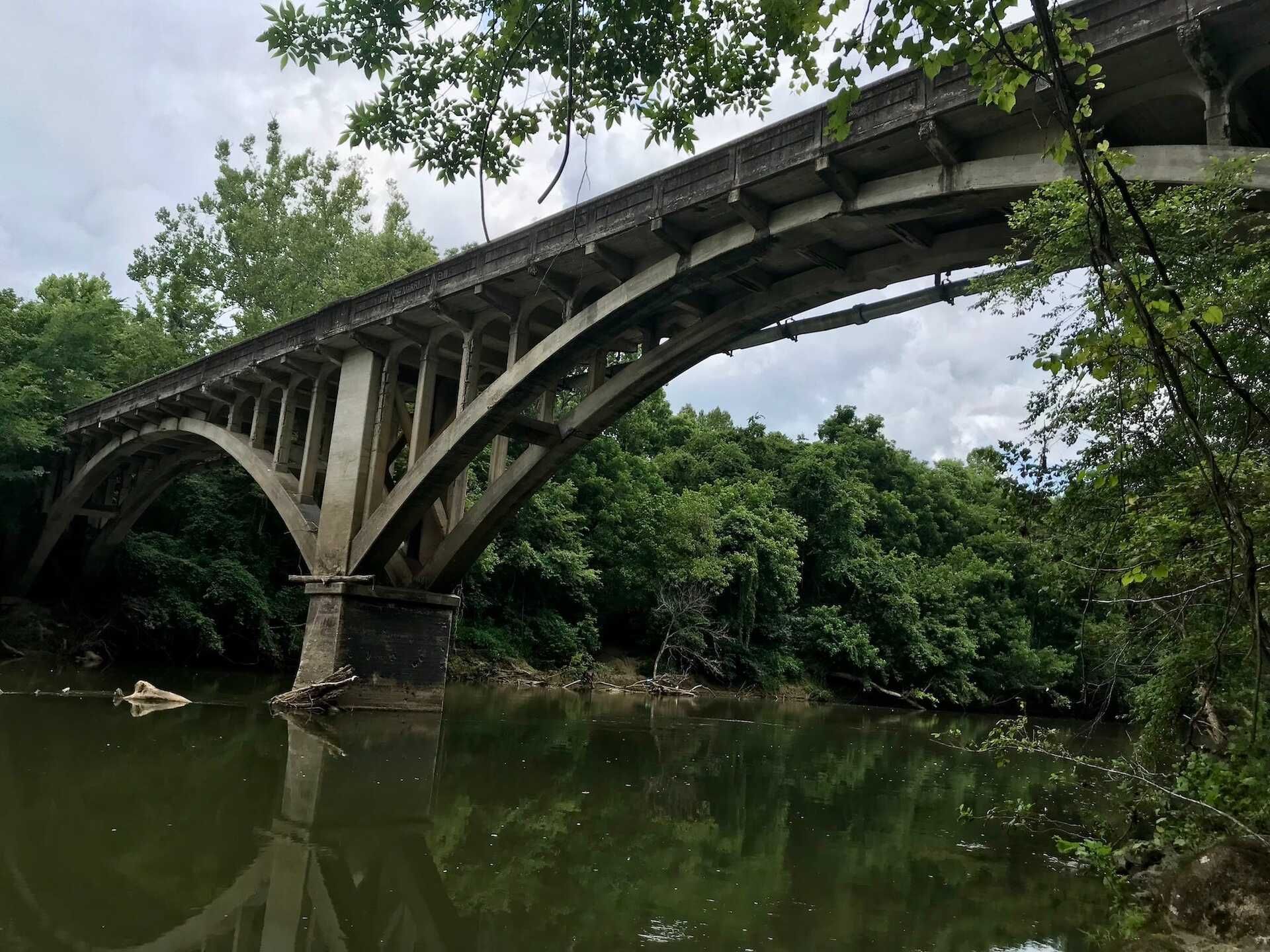 In 1925, the Luten Bridge Company finished a gorgeous, three-arch bridge in Eden, North Carolina. It was, as one of the company’s vice presidents described it, “the finest bridge in [Rockingham] County.” It was meant to carry traffic over the Dan River. There was just one hitch. The bridge wasn’t hooked up to a road. At all. The concrete span itself was finished, but the ramps on either side hadn’t been built. On one side, the bridge nearly reached a cliffside. On the other side, the bridge’s deck hung way off of the ground.
