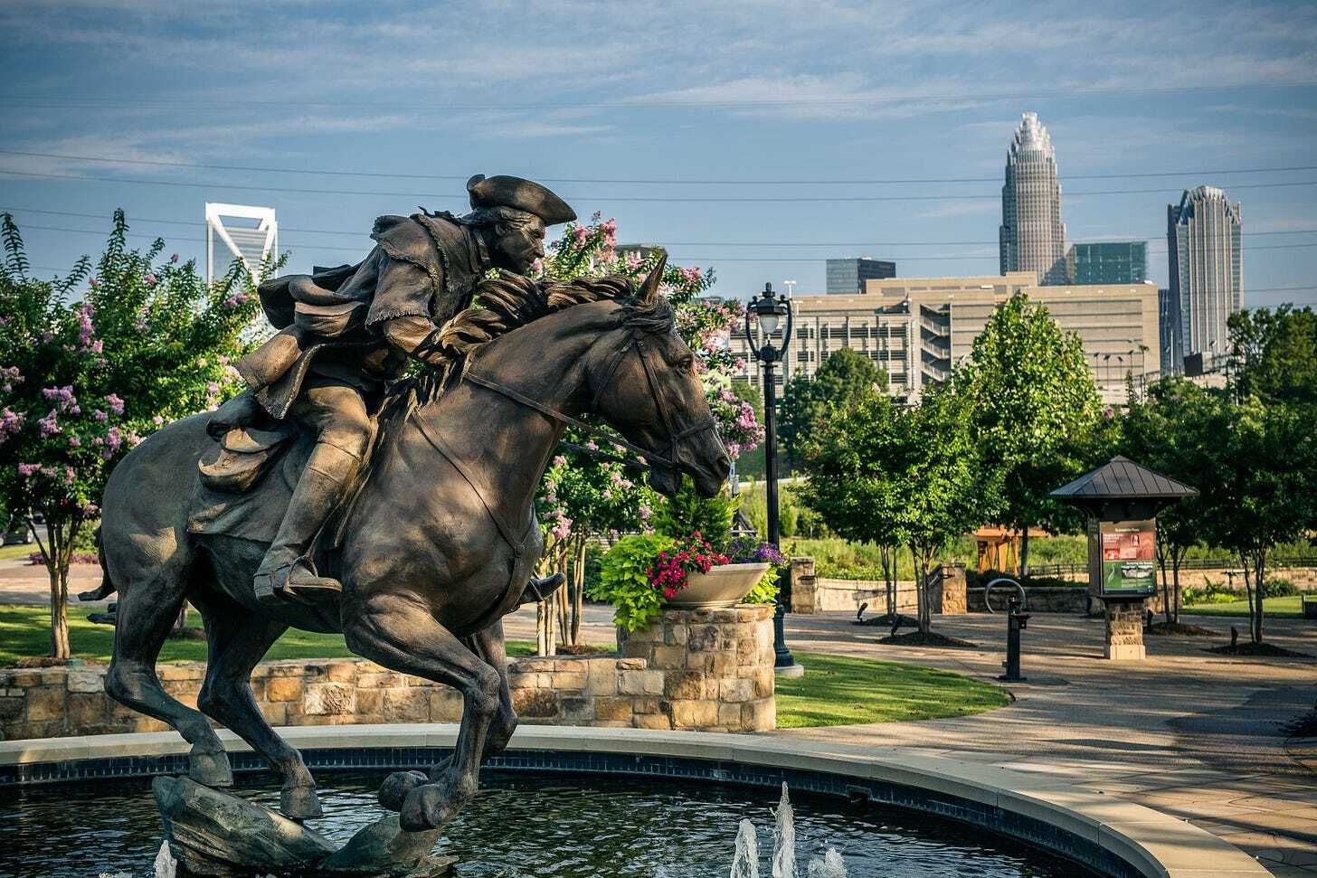 From the moment that backflip literally landed him the job, Linker was all-in on the role of his lifetime. For two months, he rode Sharek through downtown Charlotte to acclimate him to traffic, noise, and well-wishers. In preparation for his press conferences and public speaking along the route, Linker read all he could on Charlotte and the Mecklenburg Declaration of Independence. And to help him recover from the extreme heat, the committee stuffed his saddlebag with salts, potassium pills, and extra vitamins, which Linker may have occasionally supplemented with his own stash.