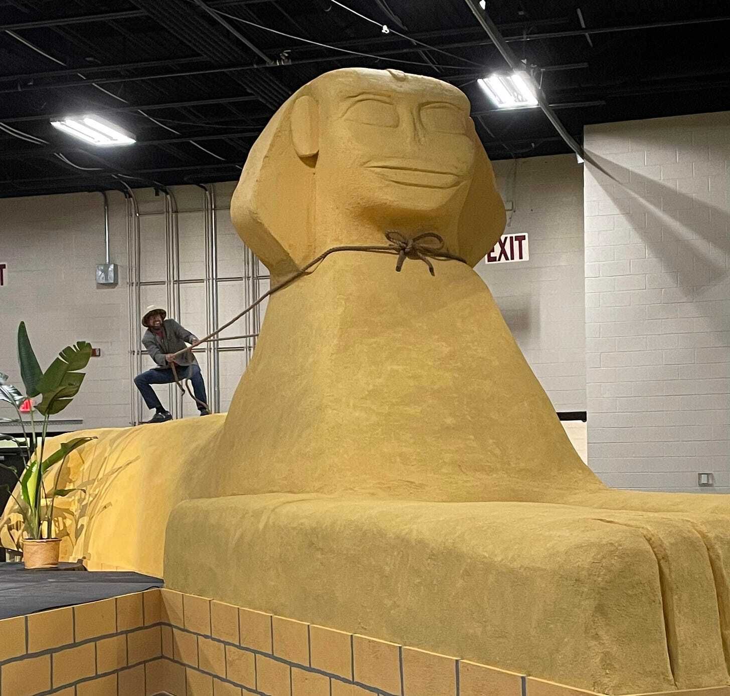 Turns out, this Sphinx is a very large stage prop made by a man from Marion named Ken Young. In my message, I declared up front that I did not have $3,000 to buy a 50-foot-long Sphinx, and he replied by telling me to come to the Hickory Convention Center last Friday night. The Sphinx, he explained, was for the New Manna Baptist Church Youth Rally. “We’re expecting people from 15 different states, 60 churches and 1500-2000 in attendance,” he said in a message before the rally. “Every year the whole weekend has a theme. This year it is Egypt. We have a comedic character that every year gets into some crazy adventure. Come and see what it’s [all] about. God Bless.”