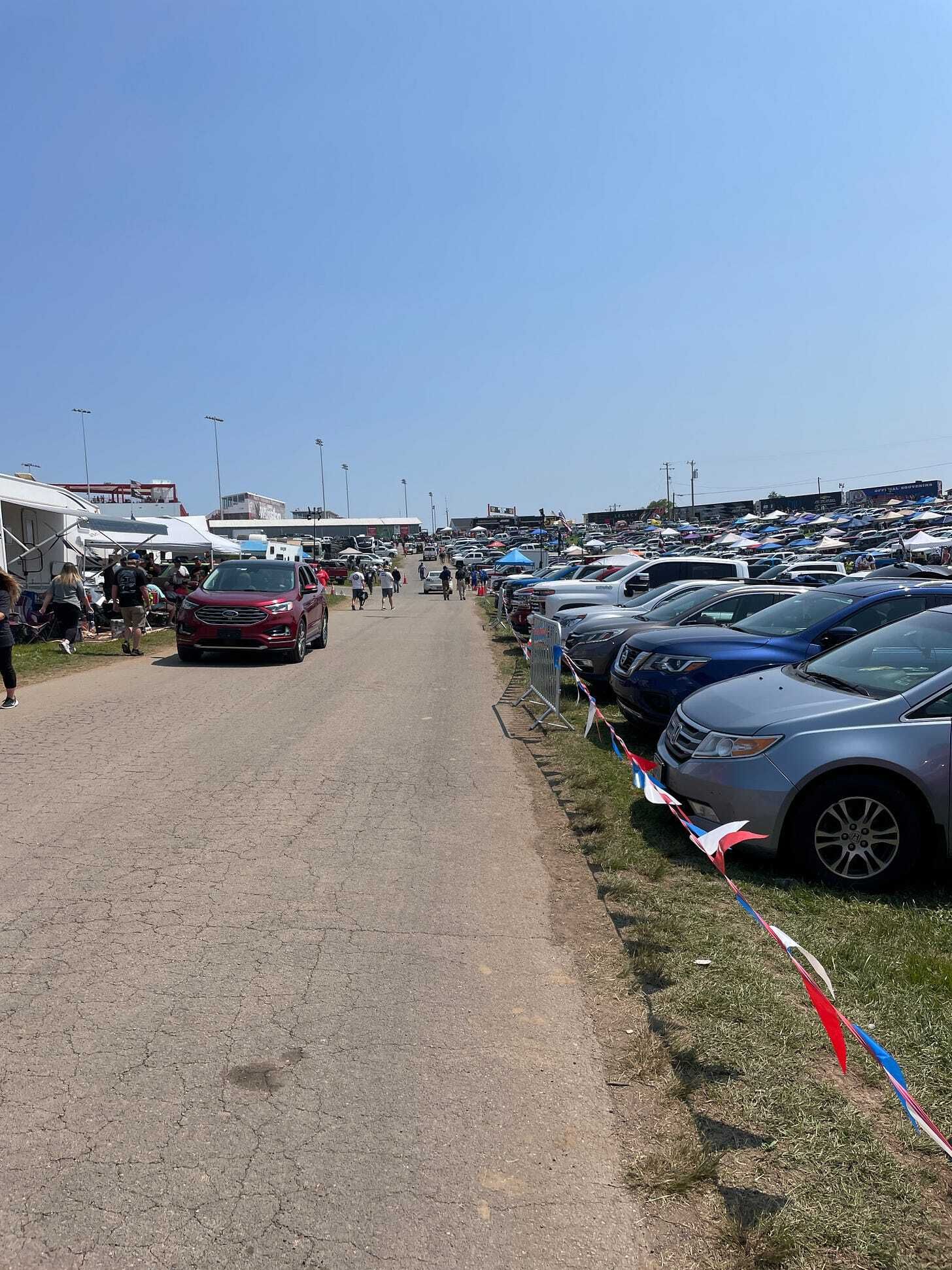 I watched the Open race from turn 2 (and discovered that people really do not like Ty Gibbs). I tried to cross into the infield afterward and ended up being sort of herded up next to the stage for the driver introductions. A guy in a lime green Dale Sr. shirt and vintage ‘80s Oakleys told me I needed to smile more.