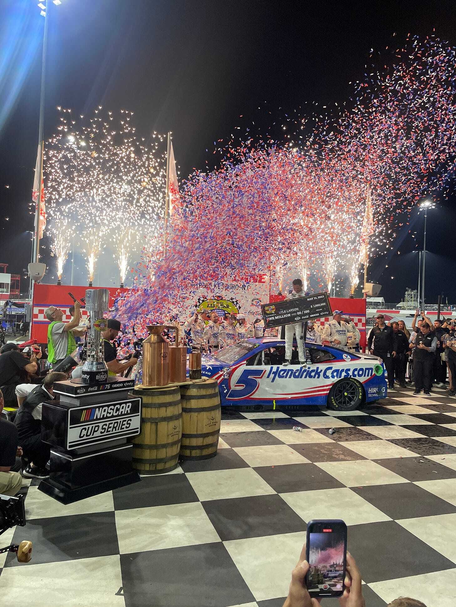Larson, though, made a simple statement that contained multitudes: “This place feels like a racetrack to me,” he said. The fans felt much closer here. They could have left once it became clear that Larson was running away with the thing. They stayed. They sold out a trucks race on Saturday. Hell, the stands were full for a trucks practice before that.