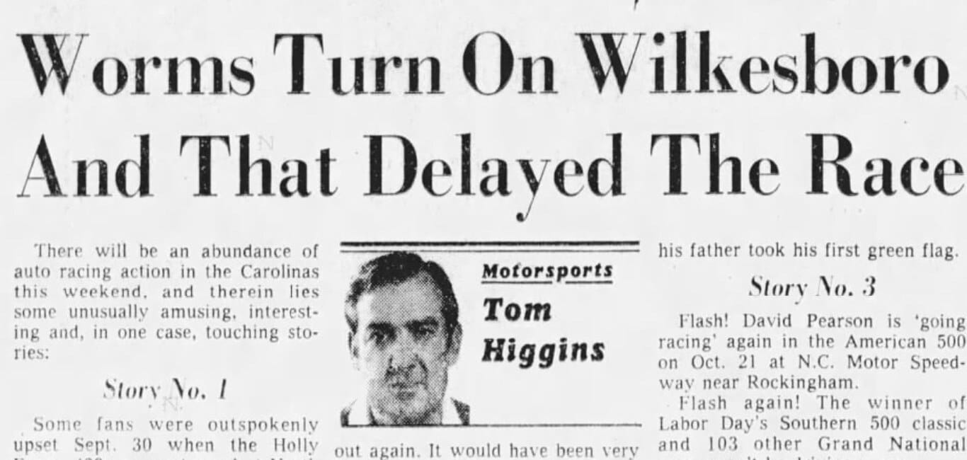 Because of that, there have always been drainage issues at the track, most notably in 1979. That’s when the fall NASCAR race at North Wilkesboro was called off. Because of worms.