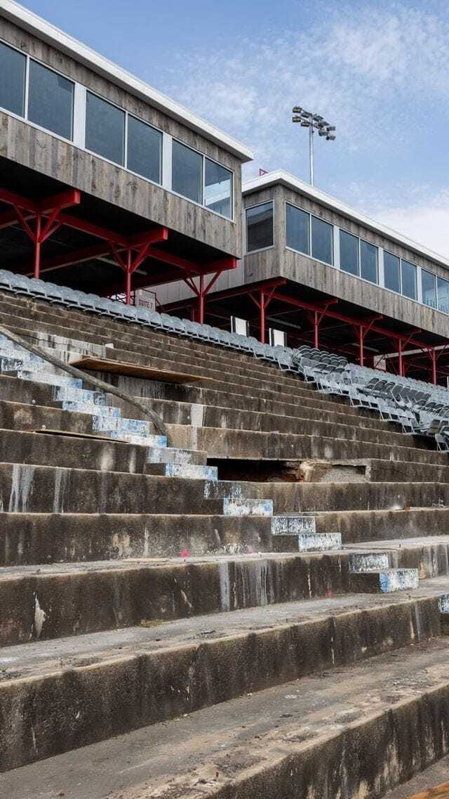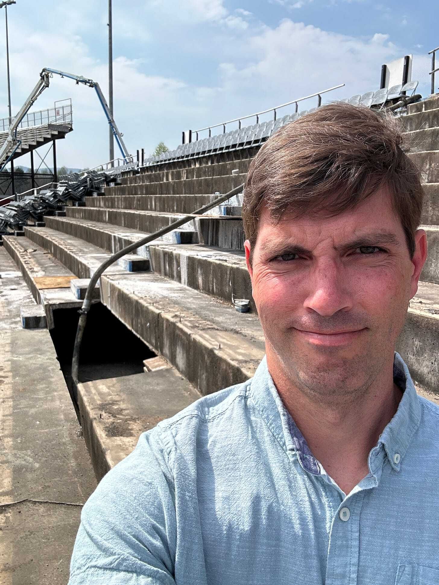 Swift noted that yes, water could have come in through cracks in the concrete on top of the berm. Or it could have washed things out from below. But there’s something a little odd about this particular hole. When they were trying to understand how big the void was, workers filled it with water. “Usually you’ll see the outskirts of red clay, which is what we see in the hole, right?” Swift told me. “Normally, if it’s an erosion problem, you’ll find that trailing of red stain where [the water] left.” They didn’t see that. The water didn’t go… anywhere. Swift says the good news was that the water test showed there wasn’t a larger sinkhole underneath the cave. (For what it’s worth, sinkholes aren’t a naturally occurring phenomena in this area. Almost all are caused by erosion or busted drainpipes, like the one in Hickory that swallowed a Corvette.) Then, there were the buried columns and wall. Again, weird. “Where they were placed from an engineering stance, they weren’t to support the grandstand,” he says. “It was kind of bizarre.”
