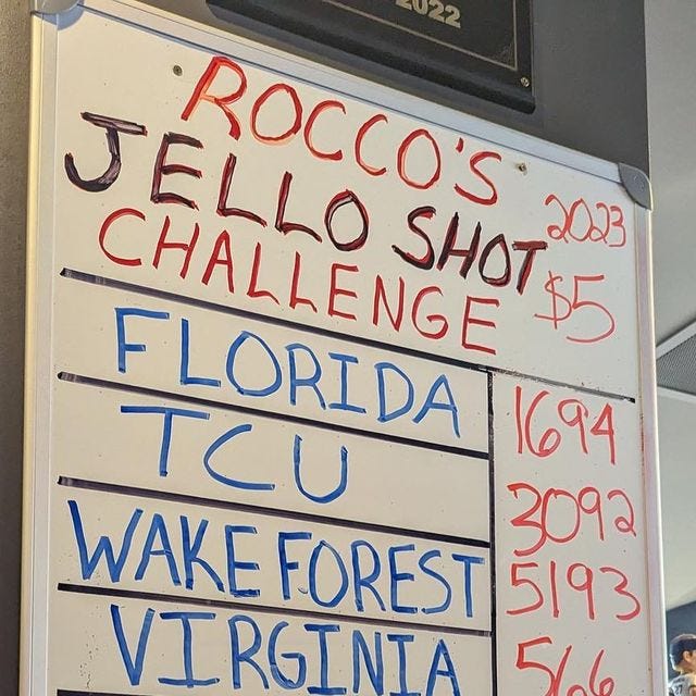 The current iteration of the Wake Forest baseball team keeps winning. They beat LSU last night in a nailbiter, despite the fact that Tigers fans tried to instill good mojo in their team by downing a frightening amount of Jell-o shots at a nearby bar.