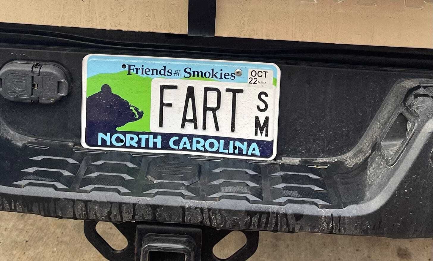 This week, the plate was featured in an editorial in the Wilson Times, which argued that FART is actually a free speech issue (literally, you cannot spell “First Amendment” without “FART”). But Karly says she’s not going to take this to court. “I can’t think of a bigger waste of money and resources” she says, laughing.