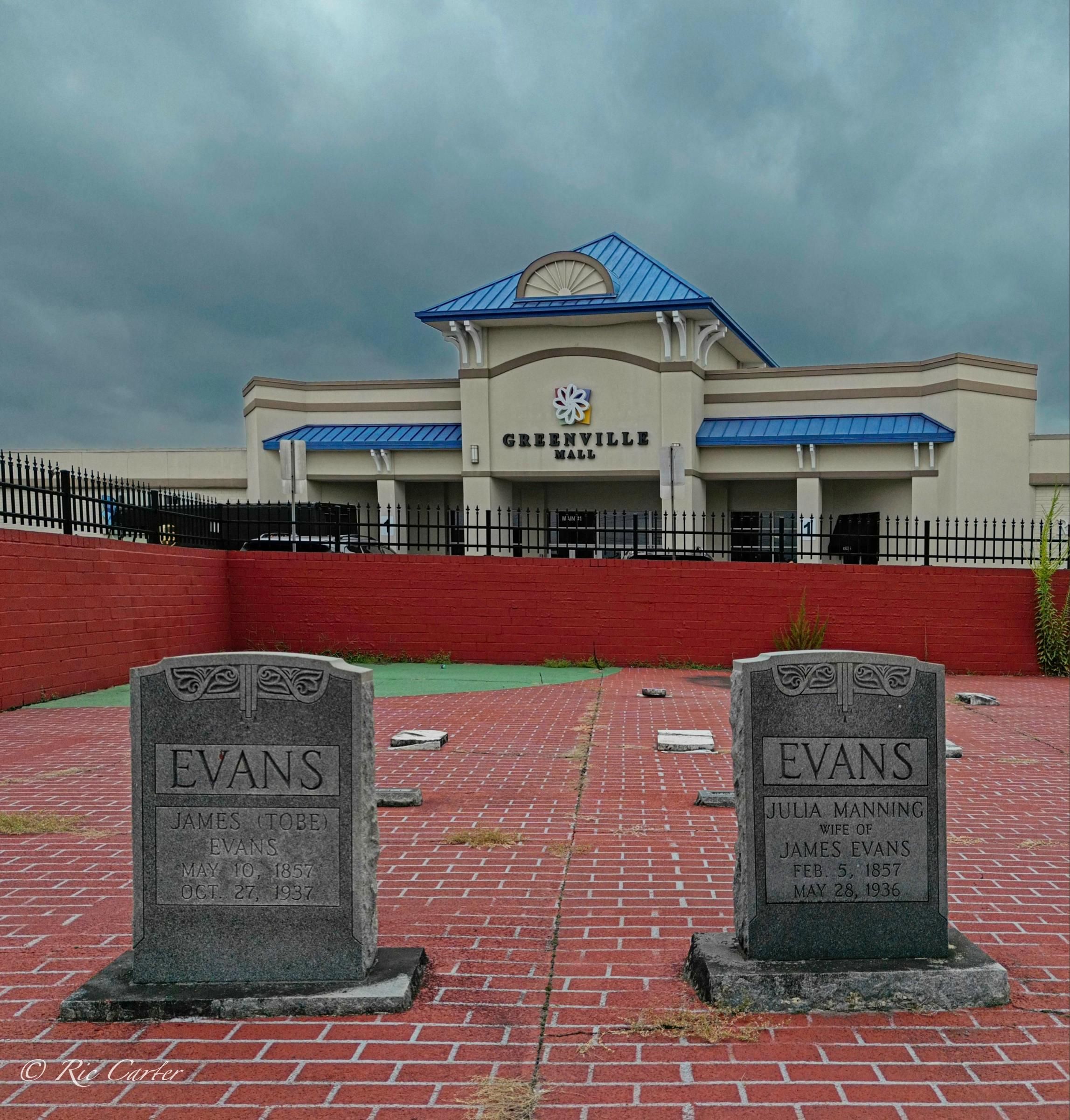 The Evans Family Cemetery In the parking lot of the Greenville Mall. (Photo courtesy Ric Carter)