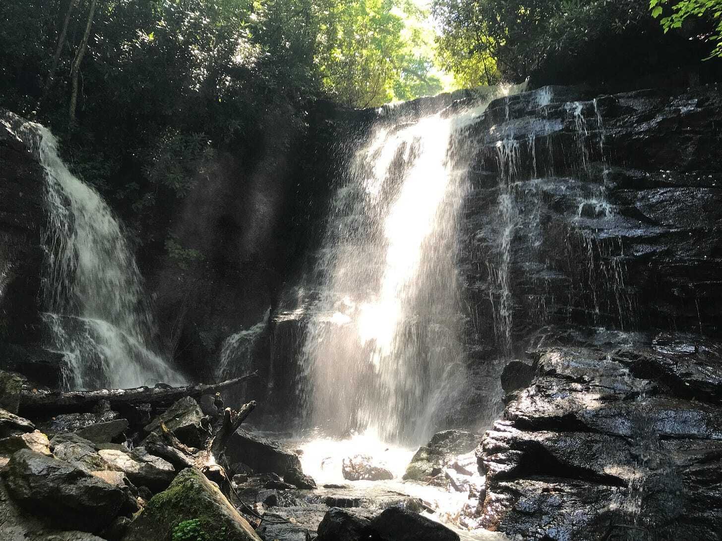 I’m adding this one because I randomly stopped here during a drive to Cherokee because I saw a lot of people pulled off on the side of the road. I went into lemming mode and parked behind them, then just followed the trail to see what was going on. It was only later that I learned that this was Soco Falls. I also snapped an iPhone picture of the waterfall at a perfect time, when the sun was directly behind the creek.