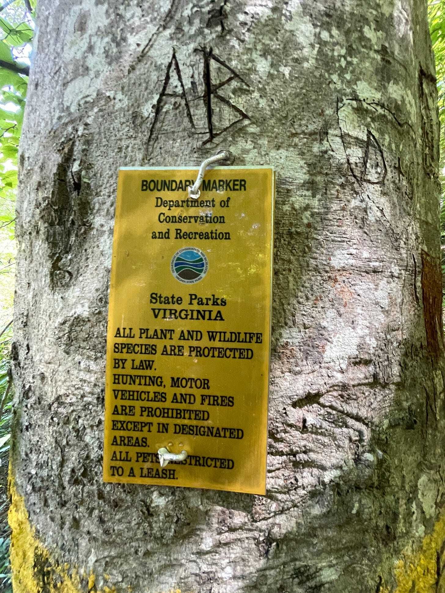 The trail from the parking lot to the actual falls is less than a quarter mile long, but you can keep going all the way out to the Mayo River, then turn right and walk into Virginia. The border itself is marked with a tree that has three spray-painted stripes on it and boundary markers nailed into the side. I’m really fond of turning my dad-ness up to 11 and telling my kids YOU JUST WENT INTO A DIFFERENT STATE OMG. Then we have lunch on a rock and go back.
