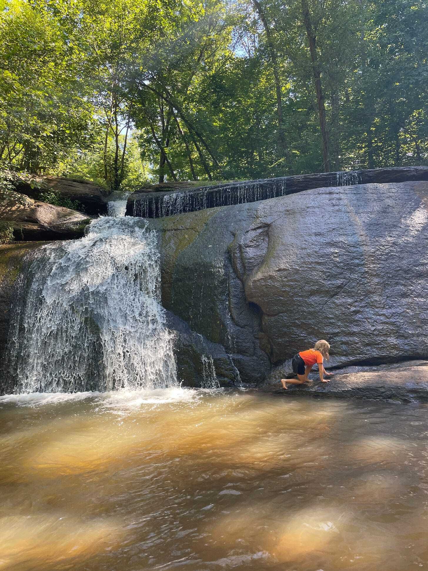 This one’s at the relatively new Mayo River State Park, and it’s the one we go to the most because it’s the closest one to our house near Greensboro. It’s a great swimming spot too, and it’s fairly quiet, because I don’t think a lot of people know about it (yet!). It’s like our own private waterfall!