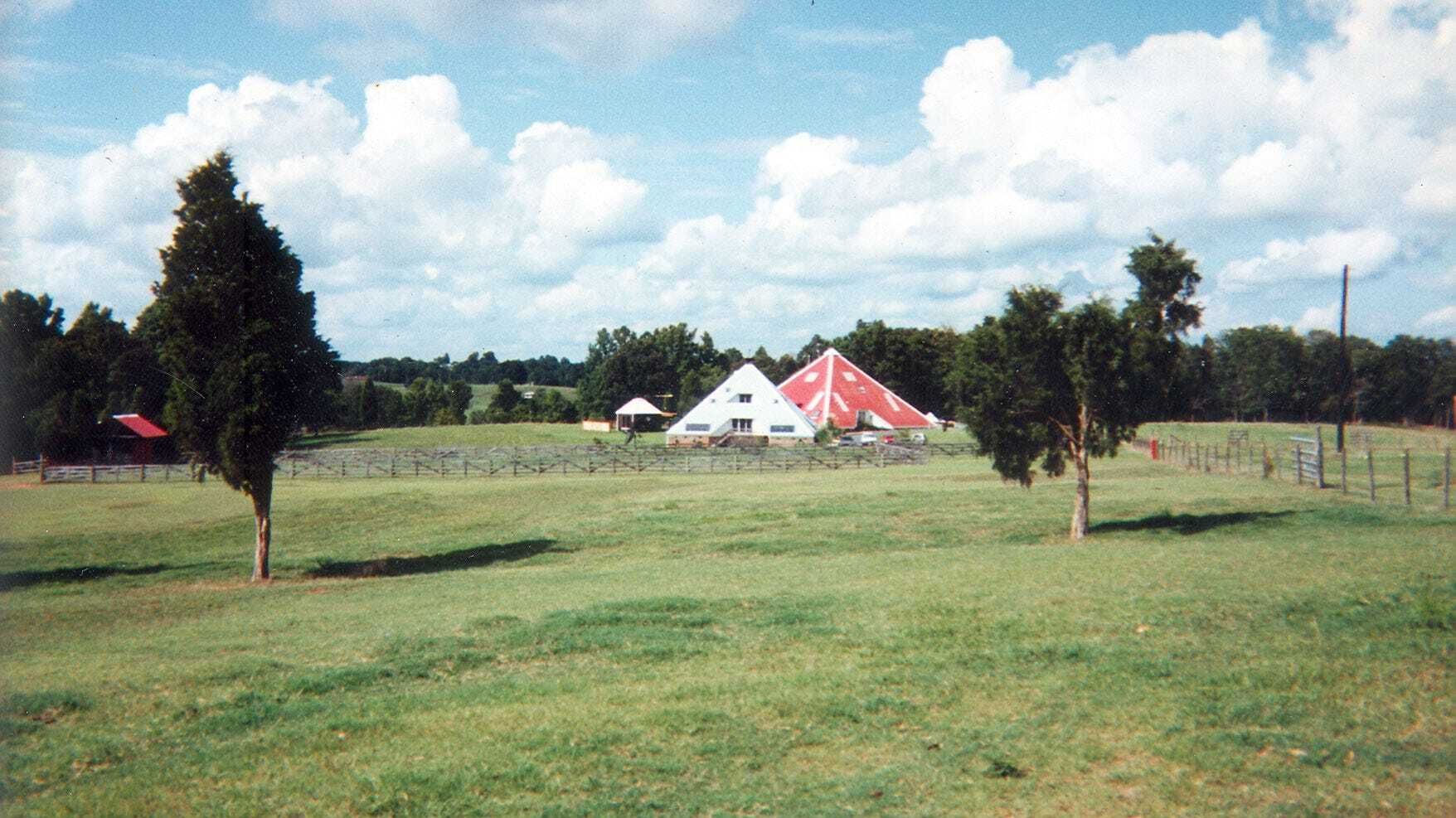 The family needed a place to live, so James converted an old milking parlor into a living space. Then, in the late 1980s, he decided to build something more exotic. The red pyramid came first. It wasn’t actually supposed to be red, but when the wrong color roofing material showed up, James rolled with it.
