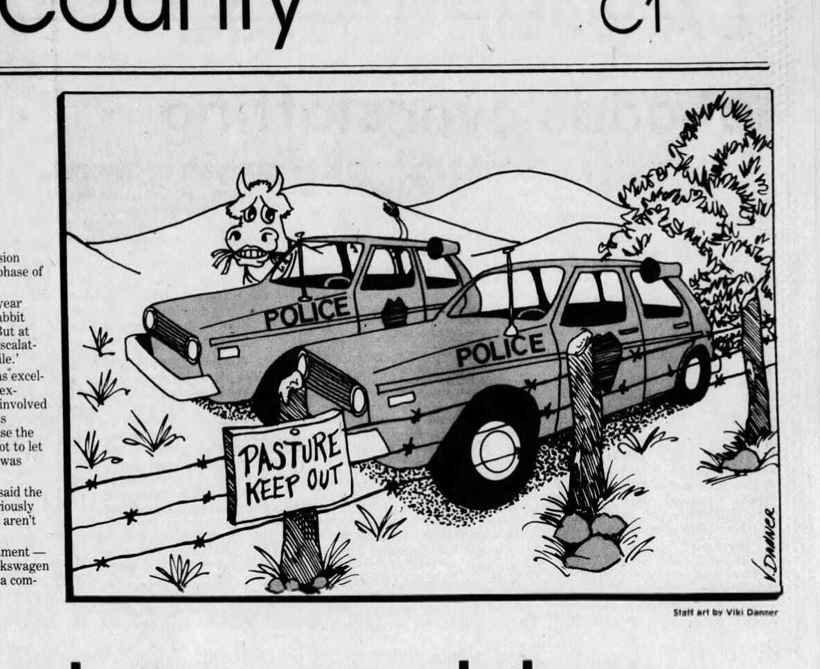 The Rabbits’ legendary status didn’t actually save them. By February 1981, the Greensboro Police announced the results of their experiment. The size of the car was the biggest problem. “Small engines are good, but not designed to run as we run them,” Lt. Henderson told the Greensboro Record. Those low operating and maintenance costs—3 cents per mile in the first year—shot way up to 33 cents per mile after three years on the road. They were also not big enough to haul suspects to jail. Other departments that had called with curiosity, like the Royal Canadian Mounted Police, didn’t end up using Rabbits themselves. The two Rabbits did very well on the road (One did get into at least one wreck in 1979 when a driver pulled out in front of it, though nobody was seriously hurt). But alas, they weren’t destined for permanent duty. One of the cars was transferred over to the main city fleet for use by administrators. The other was used for undercover work on the tactical force. The Record mournfully noticed the end of this era with a cartoon.