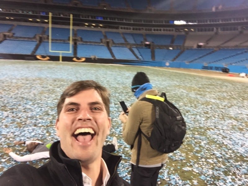 After the Panthers blew out the Cardinals in the NFC Championship, the change was staggering. It was like climbing into a Wonkavator. For the first time, I actually had a team in the Super Bowl, which meant I was actually paying attention to everything leading up to it: the unmeetable expectations, the invention of new storylines, the rehashing of old ones, and the steady building of hype, overexposure, and corporatization. Only in a parallel universe would the best question of Super Bowl week be asked by Snoop Dogg. And then Sunday hits and you remember: Oh! Right! The game! The Panthers have to win, because they are no longer the underdogs, and this is not just a great season, this is the SEASON OF DESTINY. Surely, this mix of guys, with that record, having that much fun, could not possibly lose.